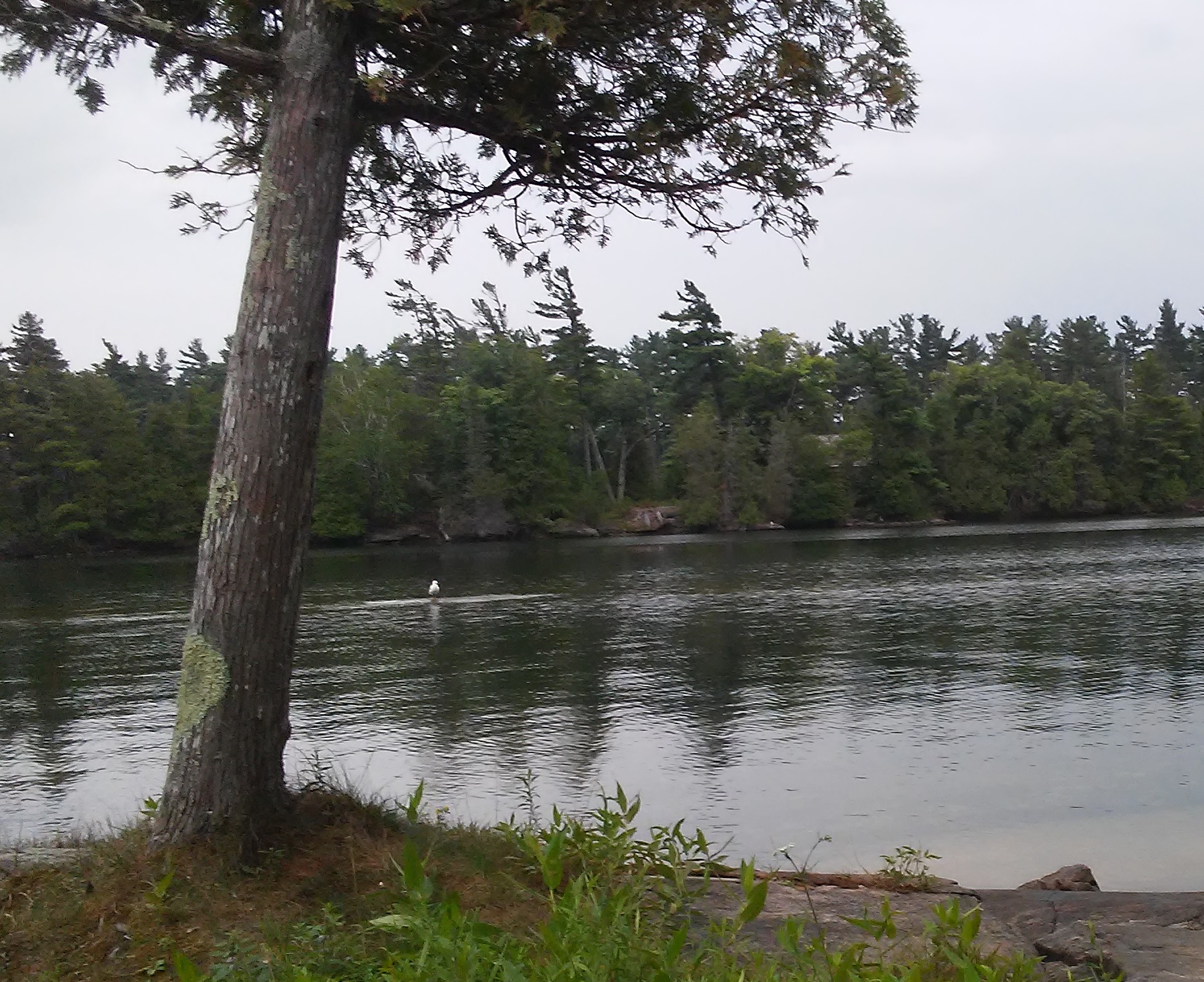 Just off shore there’s a shoal–a place where the smooth granite of the lake bed rises up to form a small ridge. I can see the grayish-brown of it under the water’s shining surface. There’s a spot where the water is so shallow over it that the gulls can stand safely and have a rest. Megan calls it the “Jesus Rock” because from our cabin, the gulls appear to be standing on the water.